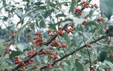 観察地の上流部に大きな群落があります。秋に熟す丸い赤い実を子どもの頃に食べた経験を持っている方も多いことと思います。 |